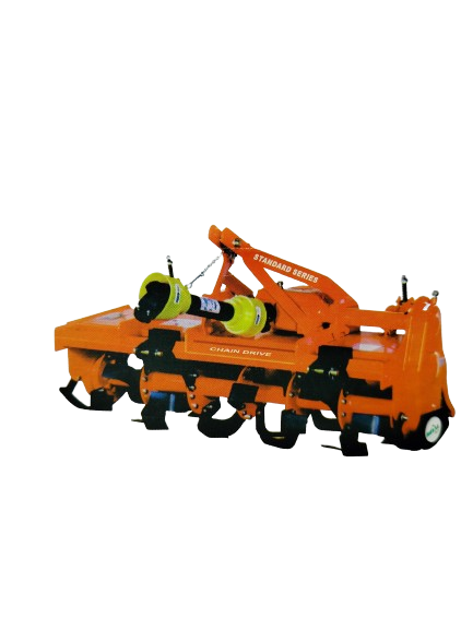 A rotavator, also known as a rotary tiller, is an agricultural machine used for soil preparation. It features rotating blades or tines that break up and aerate the soil, making it ready for planting. Powered by a tractor's PTO or its own engine, a rotavator efficiently mixes soil, incorporates nutrients, and controls weeds. It's widely used in farming, gardening, and landscaping due to its ability to save time and labor while improving soil health.